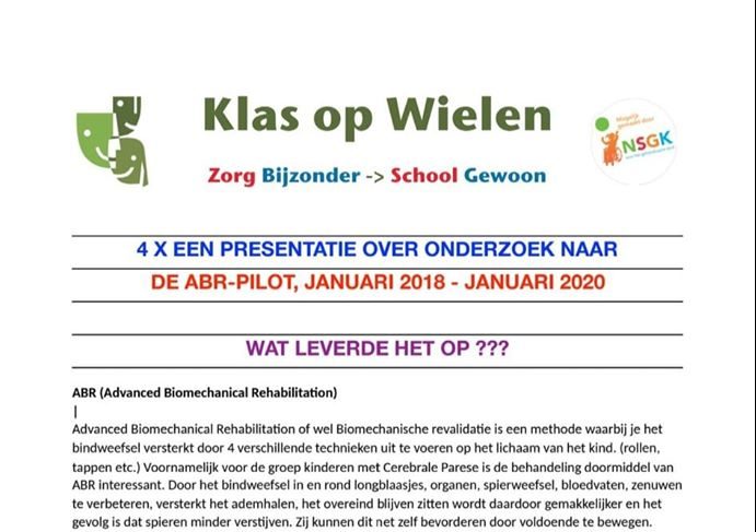 De Klas op Wielen in Alkmaar heeft de afgelopen twee jaar onderzoek gedaan naar Advanced Biomechanical Rehabilitation (ABR). De resultaten…