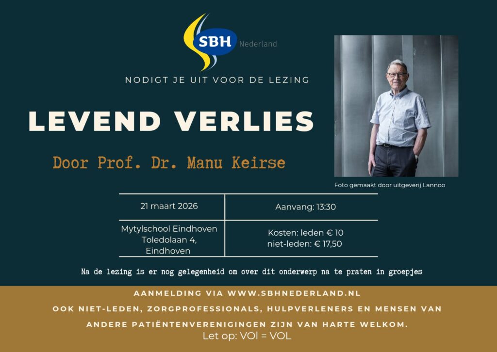 SBH Nederland nodigt je uit voor de lezing Levend Verlies door de Vlaamse klinisch psycholoog Manu Keirse op zaterdag 21 maart 2026 in Eindhoven.